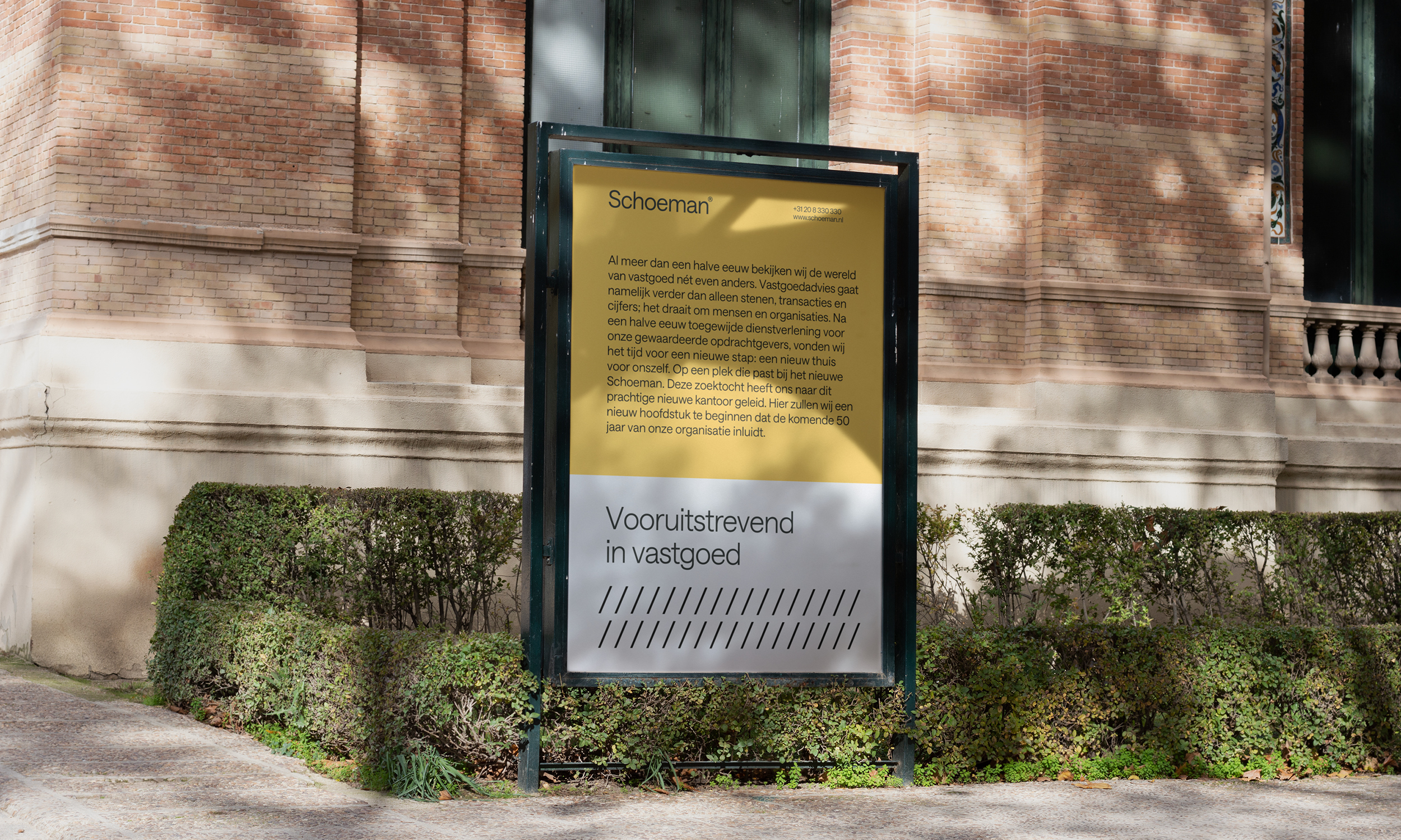 In close collaboration with Marnix Schoeman, we developed a forward-thinking brand approach built around a simple yet striking element: the forward slash. As a modern brand icon, it brings a contemporary edge and a distinctive visual signature. A strong, modernistic grid system underpins the entire identity, giving it structure, clarity, and a timeless Schoeman character.